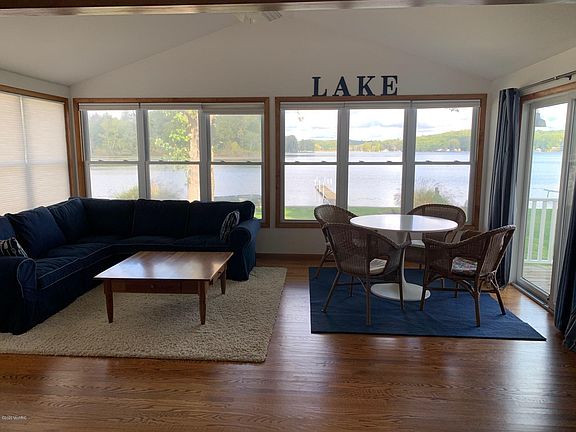 Charming Clear Lake Cottage with stunning lake view and sandy beach. Open floor plan with lake view from nearly every room. Large living room addition in 2010, updated kitchen with maple cabinets and snack bar. Plenty of space for dining area options. Two bedrooms, updated bathroom, family room with wood burning fireplace (never used by current owners) and approximately 936 SF. Newer deck and paved parking. Cement seawall and level lot to the lake for games and relaxing around the fire pit. Appliances included, seller hasn't used the washer or dryer in recent years. New well 2016, new furnace, central air and water heater 2018 and new sump pump 2020. Clear Lake is 240 acres and all sports.