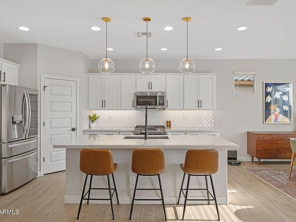 Why wait to build? This Taylor Morrison Paisley model is move-in ready and filled with extensive upgrades. With 4 bedrooms, 3 full baths, and an airy upstairs loft, it blends style and function. The kitchen features quartz counters, stainless steel appliances, a large island, and ample storage. A full bed and bath downstairs are ideal for guests or an office. Upstairs, enjoy a spacious loft, laundry room, and a serene primary suite with dual vanities, a walk-in shower, and mountain views. The private backyard is designed for relaxing and entertaining, with turf, a pergola, a fire pit area, and stunning Arizona sunsets. Your future home is waiting—let's make it happen.