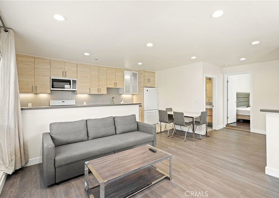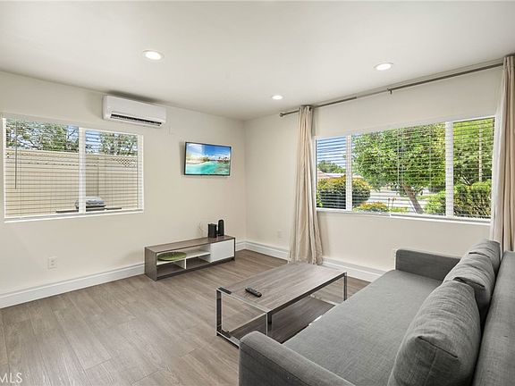 Charming and private, this 1-bedroom, 1-bath ADU is nestled in the heart of Granada Hills and offers its own separate entrance for ultimate privacy. Step inside to a cozy living room and dining area, highlighted by recessed lighting and sleek laminate flooring. The modern kitchen features quartz countertops, ample cabinetry, and a stylish backsplash. Comfort is ensured year-round with energy-efficient split AC units. The bedroom offers a peaceful retreat, and the updated bathroom is thoughtfully designed. A convenient in-unit washer and dryer adds practicality, while the private patio area provides a perfect outdoor space for relaxing.