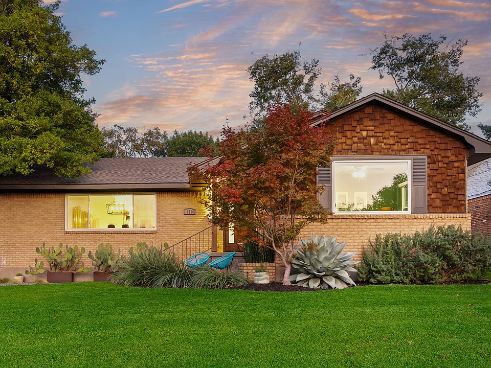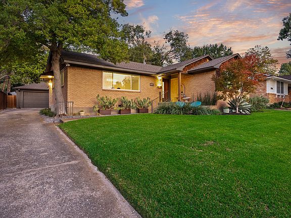 Nestled on a quiet, elevated lot in the heart of Lochwood, this home offers a blend of modern design and comfort with thoughtful use of space. Natural light fills the open living and dining areas, where clean lines and refined finishes create an inviting, contemporary atmosphere. The kitchen is both stylish and functional, featuring custom cabinetry, a striking tile backsplash, quartz countertops, and stainless steel appliances. The primary suite feels like a private retreat, complete with a navy accent wall, custom wood-slat sliding doors, and an en suite bath with a marble-tiled shower, quartzite countertops, and brass fixtures. A generous secondary living area centers around a limestone-hearth fireplace, offering flexible space for a media room, playroom, or home office. Outside, the backyard oasis extends the living space even further. The butterfly-style patio is designed for year-round enjoyment, with an outdoor kitchen, built-in bar, and lounge area beneath a vaulted wood ceiling with integrated lighting. With three bedrooms, two bathrooms, and a two-car garage, this home delivers the perfect balance of form and function in one of East Dallas’ most beloved neighborhoods. Don’t miss out on this one!