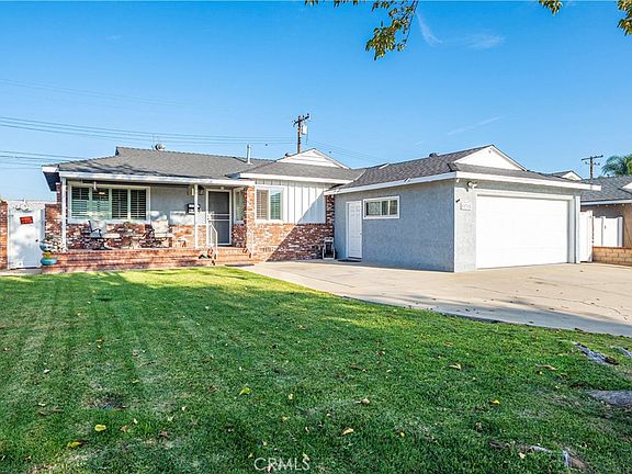 Single-family home located on a quiet cul-de-sac in a desirable La Mirada neighborhood. This property features 3 bedrooms and 2 bathrooms with approximately 1,144 square feet of living space on a 6,360 square foot lot. The floor plan is well-designed, offering balanced room distribution and comfortable living areas. The home includes central air conditioning, a two-car garage, attractive curb appeal, and a covered front porch that provides a shaded space for relaxation. The spacious backyard offers plenty of room for outdoor activities or future improvements. Conveniently located near shopping centers in Whittier and La Mirada, including Whittwood Town Center and La Mirada Towne Center, as well as local dining and freeway access for commuting ease.