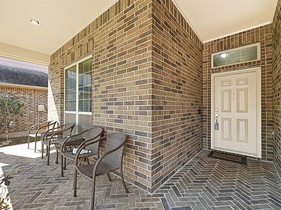 Beautiful 4-bedroom, 3.5-bathroom home located on a quiet cul-de-sac with no back neighbors. The primary suite and two secondary bedrooms are downstairs (one currently used as an office). Spacious living area with high ceilings and a cozy fireplace, open to the kitchen and breakfast area. The kitchen features granite countertops, a wraparound breakfast bar, kitchen island, gas cooktop, double ovens, built-in microwave, and a large walk-in pantry. Upstairs includes a large game room with two walk-in closets, a fourth bedroom, and a full bath perfect for guests or family gatherings. Laundry room inside. Two car garage offers an extended storage/workspace. Relax on the front porch or covered back patio with full privacy and no back neighbors. Located in a master planned community with swimming pools, tennis courts, volleyball area, clubhouse, dog park, walking trails, and convenient access to the 99 Tollway.