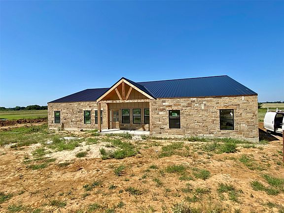 Welcome to Dixie Estates, where Texas charm meets modern design in this stunning custom barndominium set on a full acre in Whitesboro, TX. This thoughtfully designed home offers 4 bedrooms and 3 full bathrooms, with oversized bedrooms that provide plenty of comfort and space for family and guests. The striking stone façade and side-entry garage set the tone for the quality and craftsmanship throughout, with room for all your Texas-sized vehicles, toys, and equipment. Step inside and you’re greeted by soaring ceilings and an open-concept layout that blends the kitchen, dining, and living areas seamlessly. The kitchen showcases high-end custom cabinetry, Quartz counters, and a spacious island, while the living room centers around a decorative fireplace that creates a warm, inviting atmosphere. The private primary suite is a true retreat, featuring a large bedroom, an oversized walk-in shower, dual vanities, and direct access to its own covered porch—perfect for quiet mornings or evenings under the stars. A second covered patio overlooks the expansive backyard, giving you plenty of space to entertain or simply enjoy the peaceful setting. Dixie Estates is known for its quality builds, and desirable location just minutes from Lake Texoma, Megastar World Casino, town conveniences while still offering the feel of country living. With high-end finishes, multiple outdoor living spaces, and a functional layout designed for everyday living, this one-of-a-kind barndominium is ready to welcome you home!