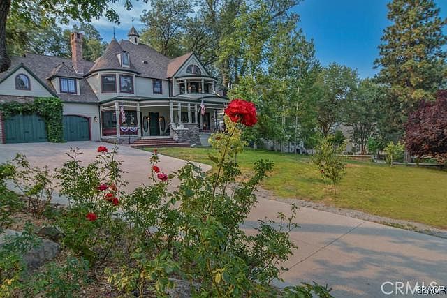MUST SELL!! This Half acre gated estate combines comfort and elegance. Large front yard fruit trees and rose garden, large covered front porch to enjoy the mountain air. Entry way offers a beautiful chandler and custom painted ceilings. There are Multiple Fireplaces, a Dining Room for 20, Large Family/Living Room & Chef's Kitchen with all the perks. On the Second level; Master Suite with a tile shower, claw foot tub even a bidet. Fireplace and a private deck. Two-bedroom suites and two bedrooms with Jack and Jill Bathroom. Continuing above the garage is a huge multipurpose room, a private office, a library with a loft. Oversized double car garage, the back yard offers a large patio and basketball court for outdoor family fun. Located in Arrowhead Woods, this is a home that goes on and on with its unique style!