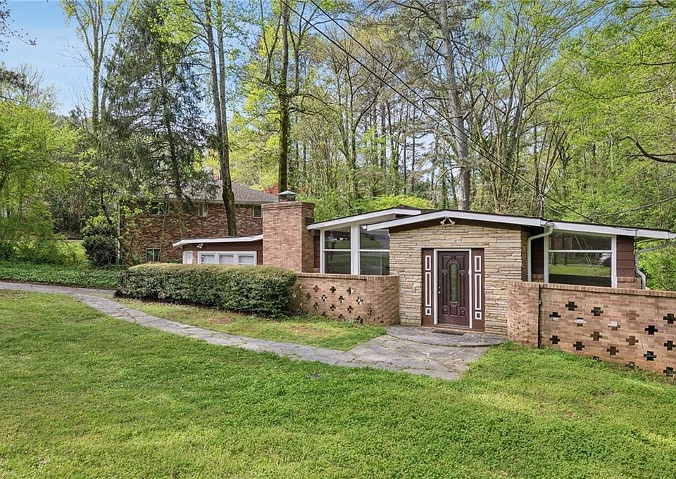 MID-CENTURY CONTEMPORARY ARCHITECTURE: near Emory University and the CDC. 4-sided brick, vaulted ceilings, exposed beams, open concept family room with fireplace and wonderful built-ins. Open foyer with coat closet and storage nook. WALL OF WINDOWS to the family room. The entire home’s exterior and interior with a fresh coat of Sherwin Williams and all new, high lumen LED lighting. The kitchen has gleaming black QUARTZ counters, large pantry separate from the huge laundry/mud room. Double stainless steel undermount sinks, newer F-Gallery oven, gas cooktop with hood. Several skylights throughout the home and large geometric windows provide tons of natural light. Hardwoods flow throughout the entire footprint of 4 bedrooms, 2 baths, separate living, dining, family room, den and kitchen. Large master bath with double closets. Cedar closets too! The backyard is completely private with a 6 foot wood fence all around. Separate back patio perfect for cookouts, basketball or just enjoying nature. The home has a rare OVERSIZED garage that fits a large car plus room for bikes, workshop and with three large windows providing natural light. Fully encapsulated crawl space provides tons of bonus storage.