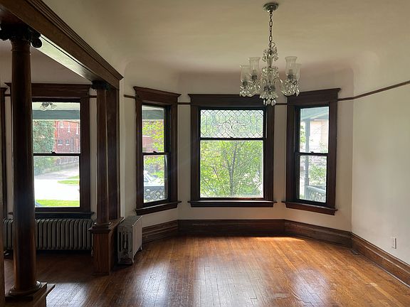 Huge, gorgeous 3-story, 4-bedroom duplex (entire right side) for rent in the coveted Hubbard Farms neighborhood of Southwest Detroit with newer custom tile bathroom, refinished hardwood floors, polished original woodwork, and unique historic features including leaded glass windows, original chandeliers and fireplace and other architectural details throughout. Exterior accent paint recently updated.