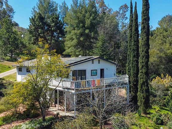Very beautiful property with tons of unique features and nice views. The home features 4 decent sized bedrooms with dual pane windows, real hardwood floors throughout, a beautiful fireplace, a finished "walk out" basement, and even 17 solar panels! The home is move-in ready for the simple person, or you may want to remodel and add your own personalization. There is amazing privacy and lovely views off the elevated deck. The grounds have been well kept and there is ample parking with the long driveway, carport, and "parking area". There is a walkway with a walking bridge to a very fun built in pool with sitting deck. The pool equipment is tucked in nicely in the pool shed to keep from the weather. There are 2 creeks on the property and they create a gorgeous setting. The nearly 4-acre large lot has multiple usable areas for you to build multiple ADU's, build a barn, boat, RV storage, and on and on! This is a stunning property with a warm, welcoming home. Septic has been serviced and inspected... it is in great shape.