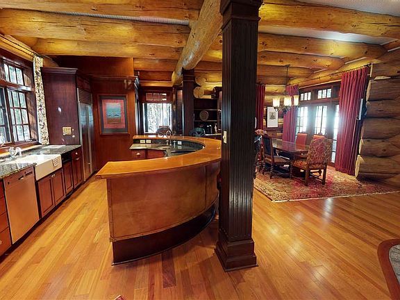 This absolutely stunning log home sits on 199' of sandy Lake Michigan frontage. The home is anything but ordinary - it is in fact, rather extraordinary. Immediately, the massive timber logs captivate your attention as they climb from the landscape to the skylight that runs the length of the house. Whilst there's only four official bedrooms, many rooms adorn bunk beds for additional sleeping space. The great room is easy to spot and lives up to its name. With a grand two-sided stone fireplace as the focal point, it is wonderfully complemented by a wall of windows and access to the lakeside of the home. Be sure to look up and see the incredible chandelier retrieved from a Scottish castle. The kitchen is spacious and timeless with vintage cabinets from industrial buildings in Chicago. Enjoy a night-cap in the three-seasons room and of course a warming fire. Did we mention there are nine fireplaces? The main-floor master is comfortable and roomy with a master closet that one can only dream of. Open the confessional door disguised as a mirror to find additional storage space. A pleasant surprise is the carriage-house style guest suite above the garage. Cross through the private hallway to be greeted by white-washed logs, a kitchen, living area, a full bath and private balcony. The contrast truly makes this feel separate while still connected to the home and access to outside. Additional 200' of frontage is available.