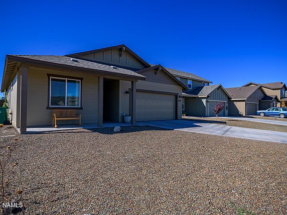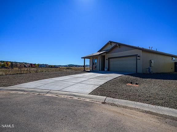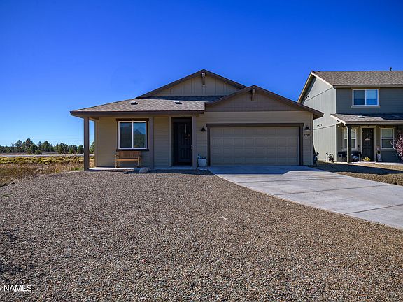 Situated on an end lot with undeveloped land to the East, this single level charmer is a fantastic opportunity at affordable homeownership in one of greater Flagstaff's newest communities. This 3br/2ba home features an open floorplan with builder upgrades throughout. The main living space hosts a spacious kitchen with stainless appliances, quartz counter tops and a walk-in pantry. The kitchen overlooks an adjacent dining area and cozy family room perfect for entertaining. The primary suite features an ensuite bathroom with a custom tile walk-in shower, dual sink vanity and walk-in closet. The split floorplan hosts two private guest bedrooms with a shared bath. The large backyard is the perfect canvas for your outdoor living space. Large driveway and 2 car garage with ample parking!