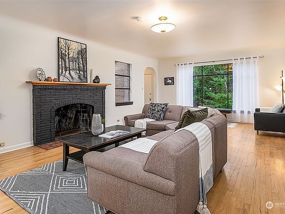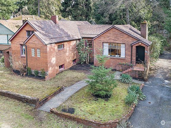 Here's a tremendous opportunity to build equity. Charming brick home on ¼+ acre lot with intriguing floor plan. Sizable living room w/ hardwoods & fireplace. Spacious dining room for daily meals and festive dinners. Three bedrooms offer variety - primary bdrm in back, 2nd small bdrm, and the 3rd is flex space for office, playroom or guests. Mud room at back door with staircase to attic. Basement workshop with exterior door plus storage & cozy cabinesque room w/ 2nd fireplace. The back yard is a private retreat for gardening and entertaining w/ space to build a DADU (buyer to verify). Enjoy gas heat, hot water & cooking. New roof, gutters just installed. Situated near Lake City shopping, buses, Meadowbrook Community Center, Matthews Beach
