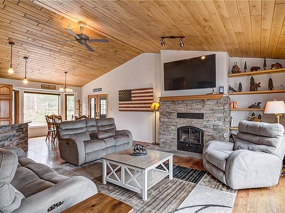 Classic Northwoods Upper Twin Lake home ready to move in & turn-key! Open floor plan on the main level with kitchen, dining & living room together. Then enjoy more entertaining space in the lower level bar and hot tub room. Plus indoor workshop/office. Master suite opens to the deck. The screen porch is attached to a full lake front deck. Convenient attached 3 car garage with work area, sink and plenty of room to store the lake toys! Watch the virtual tour to fully appreciate this lake home.