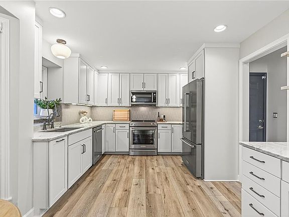 Unicorns do exist and this is definitely one! Teaser photos - more coming! Step inside this beautifully updated colonial-style home and immediately experience the quality and premium updates found throughout. The main level features fresh interior paint and gorgeous, easy-care luxury vinyl plank flooring. The completely remodeled kitchen is a showstopper, offering gorgeous quartzite countertops and backsplash, and new high-end appliances that create a luxury space for cooking and entertaining. Easy flow between the office/flex space, formal living and dining rooms. The entire space exudes warmth, comfort, and style. Heading upstairs, three generous bedrooms share a large hall bath with double vanities and a skylight. The updated primary suite stands out as a true retreat. The private en suite features a marble-tiled floor, double quartz vanity, relaxing soaker tub, and a marble subway-tile shower. French doors open to a spacious walk-in closet with a laundry area, a customized Container Store closet system, and heated floors that extend through both the closet and the primary bath. The renovated lower level adds even more versatility with a bar and media area, family room, office, LVP flooring, granite counter, and refrigerator. Additional upgrades include a Rachio smart sprinkler controller, Tesla car charger, Sense whole-home energy monitoring, and smart switches in most upper-level rooms and select lower-level areas. The majority of windows were replaced with double Low E triple-pane Thermal King windows. The furnace and HVAC have been replaced with dual-stage, energy-efficient units for year-round comfort. Located in a wonderful neighborhood close to schools, this home is truly stunning—updated throughout and sure to impress even the pickiest buyer.