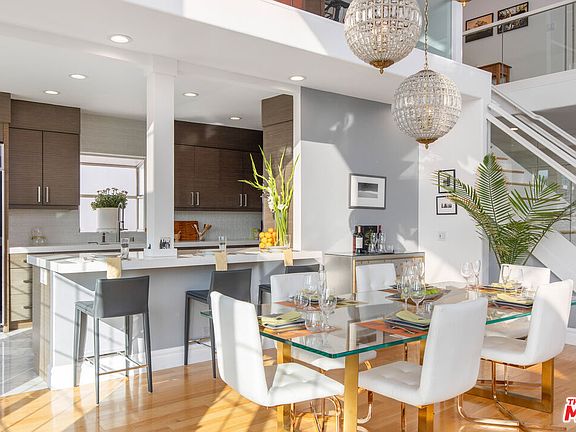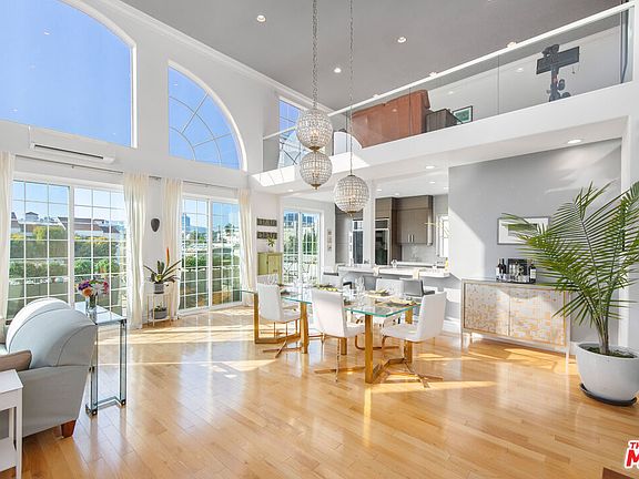 This rare and refined two-story New York style penthouse loft offers an effortless blend of creative space, sophistication, and room for entertaining in the heart of Brentwood. With over 3,100 square feet, this 4-bedroom, 3.5-bathroom residence is a spacious family home and an entertainer's dream. Ideally located blocks from the best of Brentwood - including San Vicente's premier shopping and dining, the Brentwood Country Club, top-tier grocery stores, and the beloved Brentwood Farmers Market, this extraordinary penthouse delivers both convenience and comfort in one of LA's most desirable neighborhoods. Soaring ceilings and expansive north-facing windows flood the space with natural light, city views, and mountain views - offering brightness all day long and unforgettable sunsets. The open-concept floor plan features an expansive living area, a formal dining area, and a chef's kitchen. Overlooking the main living space is a spacious second-story loft, ideal as a home office, lounge, or creative area such as a home gym or art studio. The designer kitchen is open-concept, outfitted with custom cabinetry and top-of-the-line appliances, including a Sub-Zero refrigerator, Wolf gas cooktop, double oven, and microwave drawer, along with a hidden dishwasher. All main-level bathrooms have been thoughtfully renovated with high-end finishes. The primary suite offers a generous walk-in closet and a spa-like en-suite bathroom featuring a soaking tub. Three bedrooms are located on the main level, while the fourth bedroom and loft sit upstairs alongside a laundry area with washer/dryer and direct access to the private rooftop deck. This outdoor space features artificial turf, bistro lighting, a gas fire pit, and panoramic views - perfect for sunset gatherings or peaceful mornings in the sun. This exceptional home must be experienced in person to be fully appreciated.