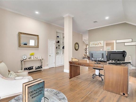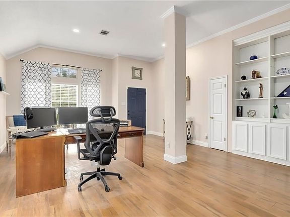 - Pantry, Recessed Lighting, Walk-In Closet(s), Dining Room, Cathedral Ceiling(s), Crown Molding, Bookcases, No Interior Steps, Multiple Living Areas