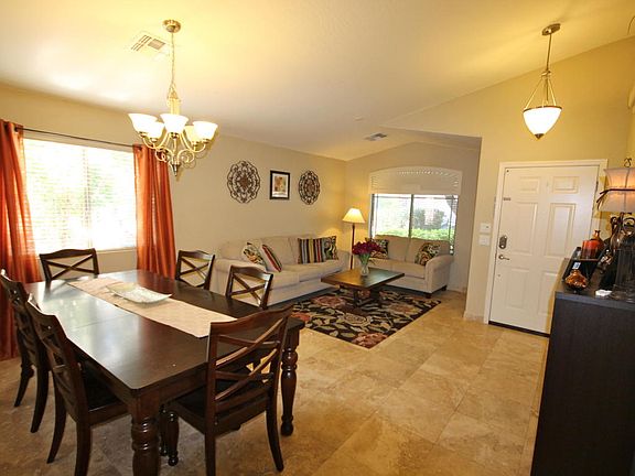 Back on the market because buyer could qualifying! NOT AGE RESTRICTED!! Come check out this beautiful upgraded home in the desirable Dos Rios community. This home boasts vaulted ceilings and gorgeous stone travertine in the main living areas, dark wood laminate in the bedrooms, and custom tile in the master bathroom. No carpet! The kitchen has granite counters and granite kitchen island along with stainless steal appliances. The interior has been recently painted plush neutral colors to accommodate any decor. The backyard has plenty of trees to provide shade for those hot summer days including a Lemon and Pomegranate tree. Right around the corner is a park and playground. Close to the 303, shopping,dining and more!