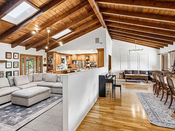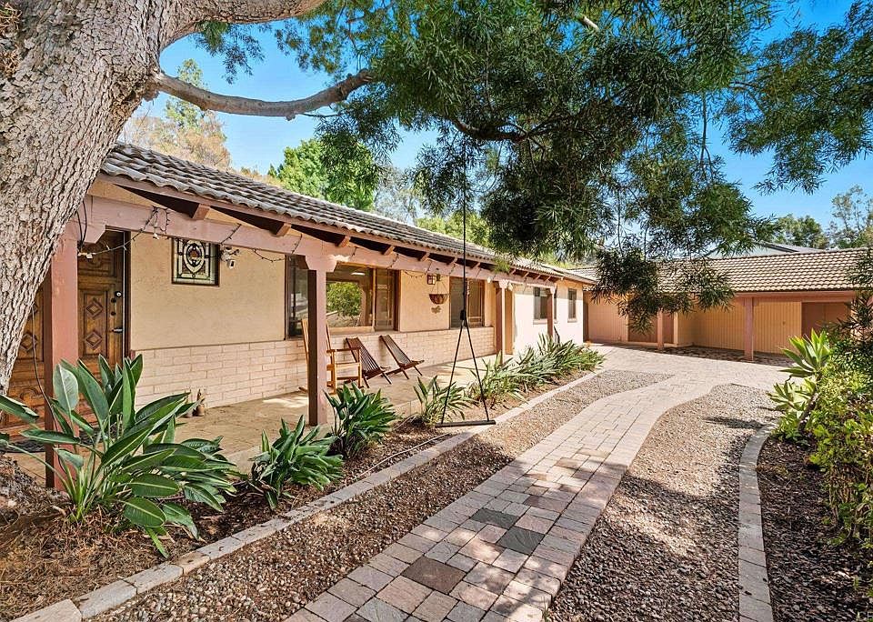 Single-level ranch home tucked in the rolling hills of Mount Helix. Assumable 2.25% interest rate for VA buyers! This stunning home truly has it all. Perched above the street with a charming front porch framed by mature fruit trees, it offers warmth, character, and space in every direction. Inside, you’ll find gorgeous wood-beamed ceilings, a spacious open kitchen, and multiple living and dining areas perfect for entertaining. The guest bathrooms have been beautifully remodeled, and the layout is ideal — with three bedrooms on one side and the primary suite plus an additional bedroom on the other. The oversized primary suite includes an office area and a bonus room, perfect for a nursery, gym, or creative space. Outside, enjoy a private in-ground pool, mountain views, and owned solar. To top it off, there’s over 1,000 sq. ft. of workshop space that could easily be converted into an ADU. Ample off-street parking completes the package. Don’t miss this one!