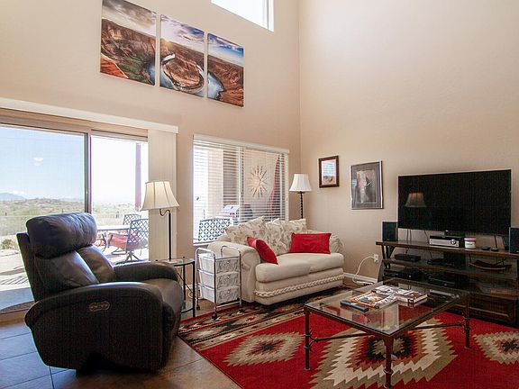 Desert Hideaway nestled in a private gated community of Desert Vista that features expansive views of Four Peaks & Red Mountain. There is not a building in site off the back patio of your Desert Vista view. With comfy outdoor furniture, a miniature fountain, and a grill in your landscaped patio, private parties w/ your favorite beverage make this vacation rental a place you'll want to visit again and again. Located in a quiet, peaceful & scenic setting with views to die for. When the mood hits you, just steps out the front door, you can find yourself cooling off in the pool or stroll across the street to an expansive dog park that sports soccer fields, playgrounds, workout equipment, skateboarding & more. Saguaro Lake is only 10 minutes away if you want more than just pool time. Sleeps 6