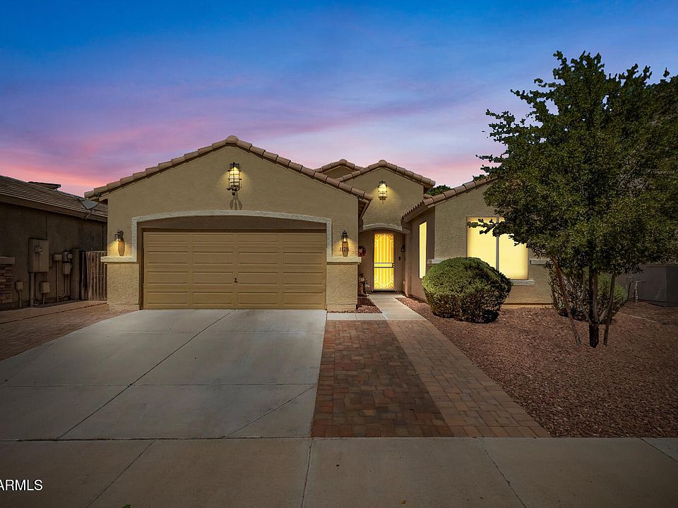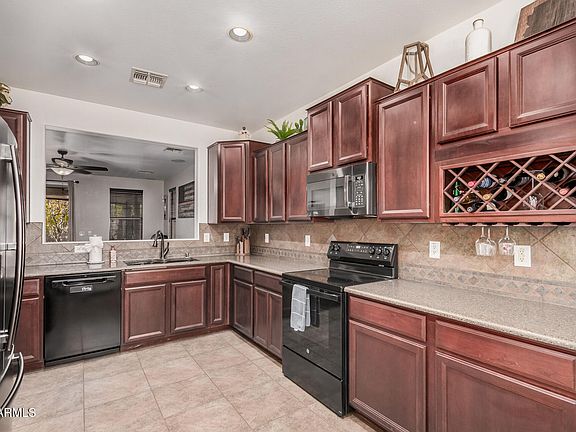 **4th Bedroom is an ENCLOSED DEN**NEWER AC*** NO AGE RESTRICTION***Peoria School District***This adorable well maintained 3-bed, 2-bath home in Crossriver offers spacious living, including an enclosed den perfect for an office, playroom, or additional bedroom. Exterior painted in 2022, New AC in 2022, Water Heater 2023 and a new drip system! The upgraded kitchen features crown moulding on cabinets, all new appliances, tile backsplash and granite countertops ideal for cooking and entertaining. The generous primary suite includes a walk-in closet and a full bath with double sinks. Step outside to a spacious yard with a covered patio with pavers and a fire pit.