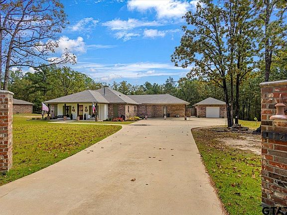 Enjoy the best of both worlds—peaceful country living just minutes from Tyler! This stunning 2.88-acre estate features two Acadian-style homes designed for comfort, convenience, and connection to nature. The 3,160 sq ft main home offers an open floor plan with a chef’s kitchen boasting a massive black walnut island, Taj Mahal quartzite countertops, double ovens, gas cooktop, and commercial-grade fridge and freezer. The living room includes a wood-burning stove and built-ins, plus an all-season sunroom for year-round enjoyment. The private primary suite features an oversized double shower, dual vanities, and large walk-in closet. Two bedrooms share a Jack-and-Jill bath, and the front bedroom is ADA accessible with its own en suite bath. Additional spaces include an office/craft room and home gym with exterior access, attached carport, and detached garage with epoxy floor. Step outside to your own retreat with a sparkling pool, hot tub, two covered porches, outdoor shower, and lush landscaping. Enjoy evenings around the gas-assisted fire pit or mornings in the greenhouse surrounded by raised flower beds with built-in irrigation and conduit for future electric. The 1,156 sq ft guest home mirrors the main home’s finishes with 2 bedrooms, 1 bath, open living space, sunroom, and attached garage—perfect for guests, extended family, or rental income. Extras include a UV air purifier on HVAC, exceptional craftsmanship, and countless upgrades. All this just a short commute to Tyler—where you can work in the city, then come home to unwind in your private sanctuary.