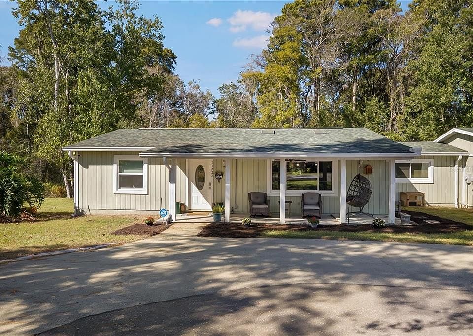 Welcome to this spacious two bedroom two bathroom pool home. With a small private pond and large mature trees, this 3.76 acre home is your perfect, private oasis. As you enter you will be greeted with an open floor concept living room leading seamlessly into a recently updated kitchen and dining room. The vaulted ceilings, three skylights, and bonus garage space (that could be easily converted to an additional bedroom) add to the overall spacious feel of this home. Attached to the home is an 800sq ft. workshop with 200 amp service, two-car garage and built in cabinetry. In addition to your workshop you will have a fully insulated 100sq ft. shed perfect for your man-cave or she-shed needs. Enjoy your new, heated, saltwater pool year-round with the new lanai and outdoor shower. The adjoining back deck is both covered and screened in, making it perfect for grill-outs and relaxation. Some of the updates include: double-paned hurricane windows, AC with UV light (2022), 5 zone sprinkler system, security system, new stainless steel appliances, new stackable washer and dryer, gutter system and much more!