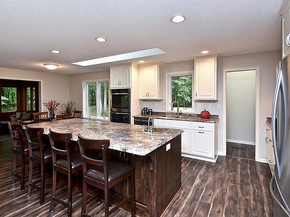 Completely renovated home from top to bottom! New roof, new garage doors, new paint, complete remodel of kitchen w/ Walk-in pantry, new appliances, master & entry. All new wood floors and carpeting, enameled woodwork and alder cabinets. Renovated bathrooms. Tile. All cabinetry throughout home has been replaced. 2-story four-season porch, private, wooded yard, small neighborhood close to 169 for easy commute. Truly a gem of a home!!