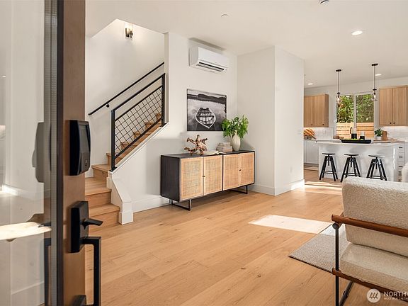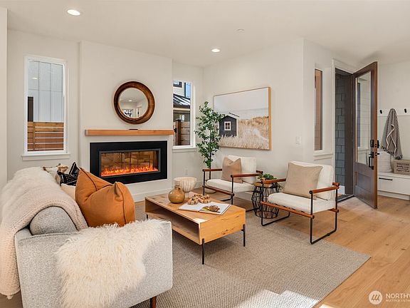Introducing modern living with bespoke designer finishes & partial city & lake views in this desirable new boutique community built by NW Contour Homes. The last release of 4-a thoughtful 3 bed & 2.25 bath home, all with their own personally appointed designer finishes. An open floor plan w/ large light filled kitchen boasts gorgeous natural wood grain cabinets, Pental slab quartz island & countertops, Bosch stainless steel appliances, hardwood floors, fireplace, 9' ceilings. Primary suite is beautifully appointed w/4 piece spa bath that boasts full height designer tile, slab quartz countertops & walk in closet, all for a modern aesthetic. Mudroom off of garage+1 outdoor parking pad, fully fenced yard. In a coveted neighborhood on Finn Hill