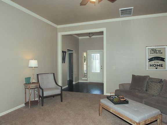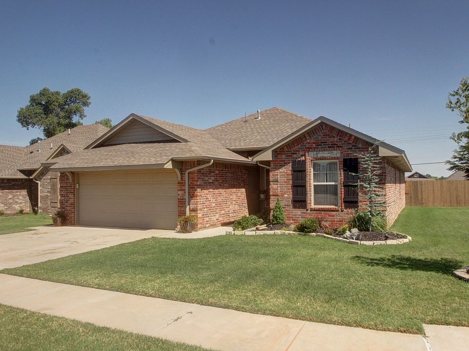 Beautiful, better than new home! Features: crown molding, recessed ceilings and granite counter-tops. Open living room with fireplace. Splendid kitchen has mosaic tile back splash, stainless steel appliances and pantry. Elegant master has double vanities, whirlpool tub, shower, and large walk-in closet. Fenced yard with covered patio. Storm shelter. Energy efficient, double glazed windows. Wonderful neighborhood with pool.