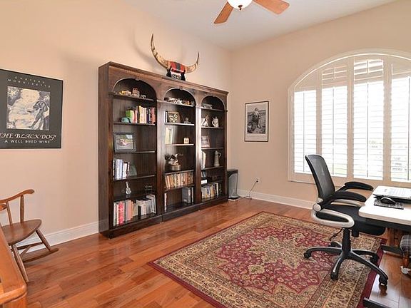 Impeccably maintained Covington model on the 13th fairway of Magnolia Plantation Golf Community.From the foyer you will find an open floor plan with a huge great room offering coffered ceiling,built-in niches and amazing views of the golf course thru the wall of sliding stackable hideaway doors.The kitchen is spacious with a large breakfast bar, granite counters,stone backsplash and stone on back of breakfast bar,stainless appliances including a newer stainless designer vent hood,electric cooktop, 42" custom cabinetry,large working island pre-plumbed for vegetable sink, separate breakfast area. Office has wood flooring, arched designer entry. Master suite is large with wood flooring, tray ceiling, two closets with cabinets & draw stack organizers,his/her vanities, under counter lighting, separate shower, two heads.Secondary bedrooms are spacious, one with a private bath.Laundry includes utility sink, cabinets.Other features include:plantation shutters throughout, central vac,wired for surround sound,architectural accents, plenty of storage closets, beautiful views of the golf course from the screen enclosed covered lanai which is large enough for entertaining, solar heated pool. 16 seer HVAC replaced 2016,all screens on enclosure replaced 2016, pool pump replaced 2015, chimney hood vent added 2013, cook top 2013,Bosch dishwasher 2014.Located in the 24 hour manned gated community of Magnolia Plantation,convenient to major highways,Colonial Town Ctr, shopping, restaurants, top rated Seminole County schools