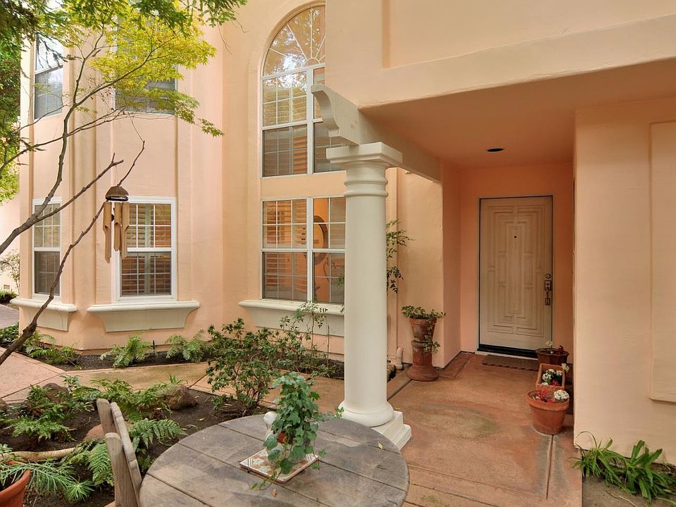 Spacious, two-story floor plan with a wonderful corner location for added privacy. Separate formal dining area. Large living room with cozy fireplace plus sliding doors lead to a partially covered patio & backyard. Main-level office or 4th bedroom with sliding doors leading to the backyard. Eat-in kitchen with Mediterranean tile flooring, Corian countertops, & European style wood cabinetry. Upstairs Master Suite with built-in wall unit for extra storage, wall to wall carpeting, fireplace, walk-in closet, plus French doors lead to a private covered balcony. Master bathroom with shower stall and tub, storage closet, & tile flooring. Space saving built-in Murphy bed in front upstairs bedroom. Private & spacious backyard with Heavenly green lawn, waterfall, plus covered and open patios for entertaining. Community amenities include clubhouse, workout room, pool, 2 spas,tennis courts, & lush grounds. Top MV Schools: Huff, Graham, & MVHS (buyer to verify enrollment).