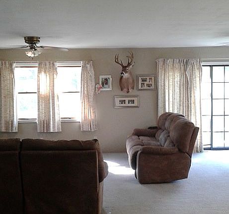 Sorry. No renter inquiries please. Great starter home or lake get away. This seasonal lakeview home features 3 could be 4 bedrooms and 3 baths, situated on 4 lots with detached 2 car garage with heated workshop. Plenty of space to store your ATVs or water toys! Home has a finished basement. Open layout with spacious room sizes. Basement holds a large living space, bedroom, a movie room (or could be 4th bedroom), and a large laundry room. Roof replaced May 2018. There is a large lakeside deck and separate entry to basement. Two cherry trees and a mulberry tree. Wild blackberry bushes grow around the property borders. Less that a half of a mile to lake launch and Flat Creek Restaurant! It cannot get more peaceful than this!