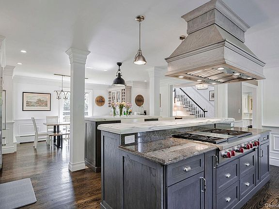 This elegant 4-bedroom home (with a 5th bedroom in the finished lower level), Hillwinds, set on 3.78 acres offers a perfect blend of traditional craftsmanship and modern luxury. The sun-filled living formal living room features custom wainscoting, coffered ceilings, soaring to 9.5' feet, and a wood-burning fireplace. The gourmet kitchen boasts marble & granite countertops, brand new high-end appliances (Wolf & Subzero), new wet bar, and a generous island open to the family room-ideal for entertaining. Formal dining room with marble floors and stylish millwork. The serene primary suite offers a vaulted ceiling, spa like marble bath with jet tub and new steam shower, and an impressive walk-in dressing room with custom built-ins. Upstairs spacious bedrooms connected by a Jack & Jill bathroom just beautifully renovated. Additional features include a full house generator, hardwood floors, and extensive updates inside and out. Step outside to your private oasis with lush landscaping, bluestone patios, and a newly appointed heated Gunite pool equipped with a new Jandy Smart System and pool cabana. Outdoor living is enhanced by new stone wood fire feature overlooking the pastoral property. A truly turnkey residence offering comfort, elegance, and privacy in a beautiful setting.