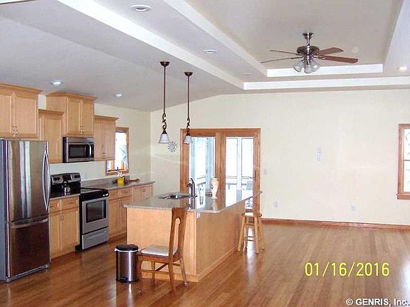 Very good quality construction. Open floor plan, 3 bedrooms, 21/2 baths, cathedral ceilings in kitchen & living room, master bedroom/bath, unfinished, dry basement w/1//2 bath, oil fired boiler for hot water radiant heat. Home is nestled in the orchards a stonesthrow from Lake Ontario