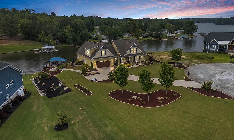 Designers delight! You will be awed by this amazing Lake Greenwood home! Located in the boutique community of Sunrise Pointe overlooking some of the lakes most inspiring views! This home is in immaculate condition and provides an absolutely wonderful floor plan. From the moment you approach the craftsman styled front porch entering the home through the stylish front door your gaze will go directly to the wall of windows overlooking the wonderfully designed lakeside yard, spacious screened porch and paver patio with access to your very own golf cart path leading to your deep water floating covered boat dock with lift! The space in this home is laid out perfectly with an open vibe but yet having defined spaces. From the dining room to the open great room with gorgeous stone fireplace with beautiful wrap around mantle. The kitchen is perfectly positioned and flows seamlessly into the sitting room where the views are downright spectacular! A private primary suite is around a corner and enjoys its own lake views and super stylish primary bath featuring dual vanity, custom walk-in shower and a large closet with built in system. The opposite side of the home features two good sized guest rooms and a full bath. There is a large 4th bedroom/bonus room with a private full bath over the garage providing the ultimate in additional guest space! This home is ready for new owners and is priced below current appraised value! Call today for your private tour of this amazing opportunity to live in one of Lake Greenwoods premier communities!