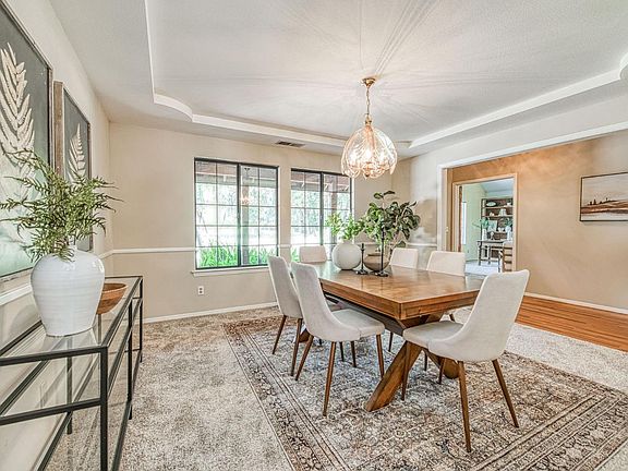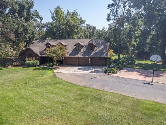 This custom-built 4-bedroom, 3.5-bath, +/-3,100 sq. ft. home is nestled in a private cul-de-sac with a gated entrance on a peaceful street along the River Bottom in Sanger. Situated on nearly 6 acres, it offers seclusion while being close to freeway access, shopping, and restaurants. Ideal for entertaining and spending time with friends and family. The property features a spacious shop/detached garage with room for a boat, cars, and a dedicated workshop. The property has space for a potential guest house, and a large lawn for outdoor activities.Property Features:Interior:4 bedrooms, 3.5 bathrooms3,100 sq. ft. of living spaceFormal dining roomLibrary/home officeLiving room with stone fireplaceKitchen with granite counters, extensive cabinetry, and views of backyard/poolLarge utility/laundry room with backyard accessUpstairs loft with skylights and sliding barn doorTwo upstairs bedrooms with deck accessDownstairs primary suite with two walk-in closets and ensuite bathExterior:Nearly 6 acres of landCreek along the back of the propertyPrivate cul-de-sac with gated entranceFenced pool with entertainment deckCovered patio3-car garage plus additional shop/garage with workshop~Space for boat storage and RV hookupsLarge lot with room for guest houseLocation:Peaceful street in Sanger's River BottomClose to freeway access, schools, shopping, and restaurants