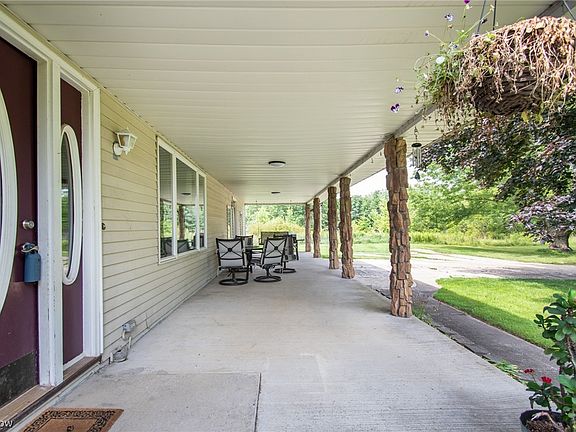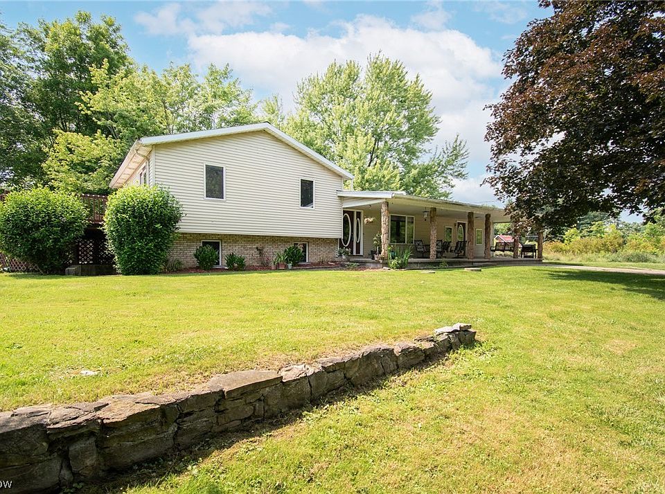 Come enjoy this lovely 1.7 acre, 4 bedroom home in South Range Local School District! Situated on a private country setting this home invites you to sit and relax on the covered front porch or enjoy the sunset from the large back yard. The property hosts a small barn and an open shed for your lawn equipment. The home was completely renovated in 2012, renovations included wiring, HVAC, hot water tank, plumbing, sump pump, kitchen cabinets. The first floor hosts a large living room, eat-in kitchen, family room, and master suite. On the upper floor you will find three large bedrooms and a large 2nd full bath. Two of the bedrooms lead to a private deck via sliding glass doors. This home is a bi-level home with a ranch-like feel. The lower level is plumbed and ready to have a 3rd full bath installed and is a blank slate to become whatever space you are desiring. The 2nd lower level hosts the laundry, utilities and has great room for storage. New heat pump installed July 2023, new septi