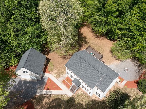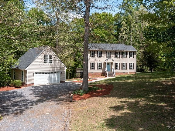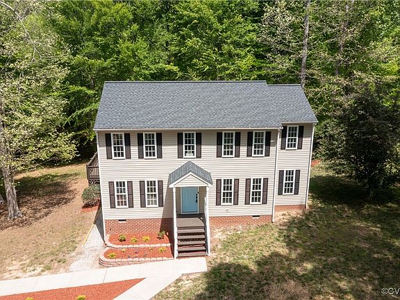 FANTASTIC renovated home in Chesterfield County! This amazing home offers 2,102 square feet, an oversized 2-car garage with an awesome finished climate controlled room above, and almost 4 acres of land. The main level offers a huge bright family room with ceiling fan, a formal dining room, a beautiful kitchen with stainless steel appliances and a pantry, an open breakfast nook with a picture window, the separate laundry room, and a half bath, with luxury vinyl plank flooring throughout. The second floor features the spacious primary bedroom with carpet, ceiling fan, walk-in closet, and a large private full bath, as well as the additional 3 good-sized bedrooms, all with carpet, and a full hall bath. This property has had so much love and care put into it to make it absolutely gorgeous. Check out the large back deck overlooking the creek and woods in your backyard or relax around the graveled fire pit area that is perfect for entertaining. Rural and secluded with land to spare, but still so convenient to surrounding cities, schools, and entertainment venues - take a look! Updates include new: LVP on first floor, carpet on second floor, vanities and toilets, stove, dishwasher, refrigerator, paint, lighting and floor paint in garage, landscaping, light fixtures/ceiling fans, hot water heater, kitchen cabinets painted and new hardware, sink, granite countertops, subway tile backsplash, storage room door, new decking boards/railings and paint, recessed lighting in kitchen.