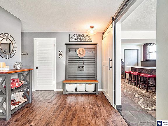 Discover the convenience of this move-in ready property, ideally located in Omaha's Roanoke Estate, near Tranquility Park, Maple Athletic Complex and Monolithic Brewery. This home features 3 bedrooms and an oversized 2-car garage. As you pull into the driveway, you'll appreciate the fresh exterior paint ('22). On the main floor, the living and dining rooms boast stunning new laminate plank flooring and fresh interior paint. The kitchen is equipped with newer black stainless steel appliances and a custom-built island. Through the elegant French doors, you will find a beautiful new composite deck that overlooks a flat, spacious backyard and fire pit, ideal for entertaining. Downstairs, the welcoming foyer has a handcrafted barn door leading to a bonus rec room with a bar and fireplace. The laundry room has been recently updated with a custom pedestal for the included, new washer and dryer set, along with a new toilet, sink, and water heater. A new AC ('22) is the icing on the cake!