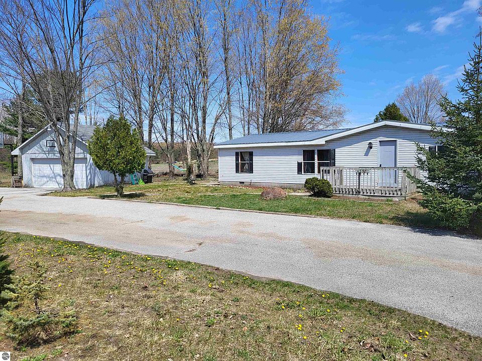 Perfect location! In the heart of the Sleeping Bear Dunes and 1000's of acres of state land. Just 5 miles to Lake Michigan Beach and Sleeping Bear Dunes, 8 miles to Empire 9 miles to Lake Ann, and 2 miles from snowmobile and horse trails. This 2 bedrooms, 2 full baths, manufactured home sits on just over 5 acres. Large back deck overlooking the country side. Great fenced in garden area. Detached 2 car garage. A nice place to live and play in the middle of paradise.
