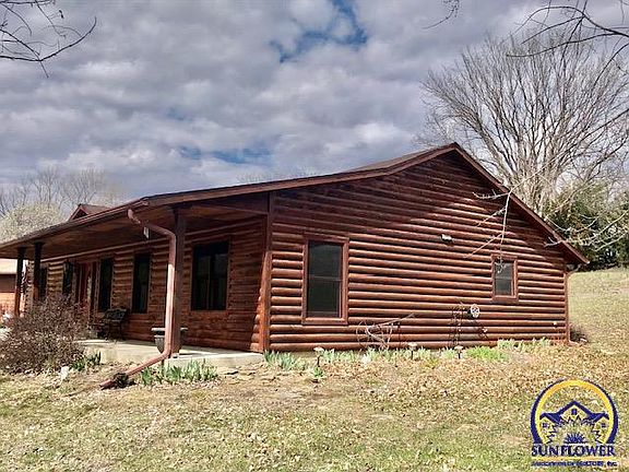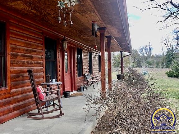 Gorgeous log sided home on 4.35 acres! Secluded setting, South of Oskaloosa, Jefferson County. Custom built with open floor plan, vaulted ceiling in living room, large kitchen, and awesome primary bedroom suite with huge closets! Sit on the front porch and watch the birds or hang with the goats/horses/cows, in the 18x20 outbuilding. Property has perimeter fencing, and an oversized double garage. Only 3 miles from Perry Lake. Unbelievable price $329,000.