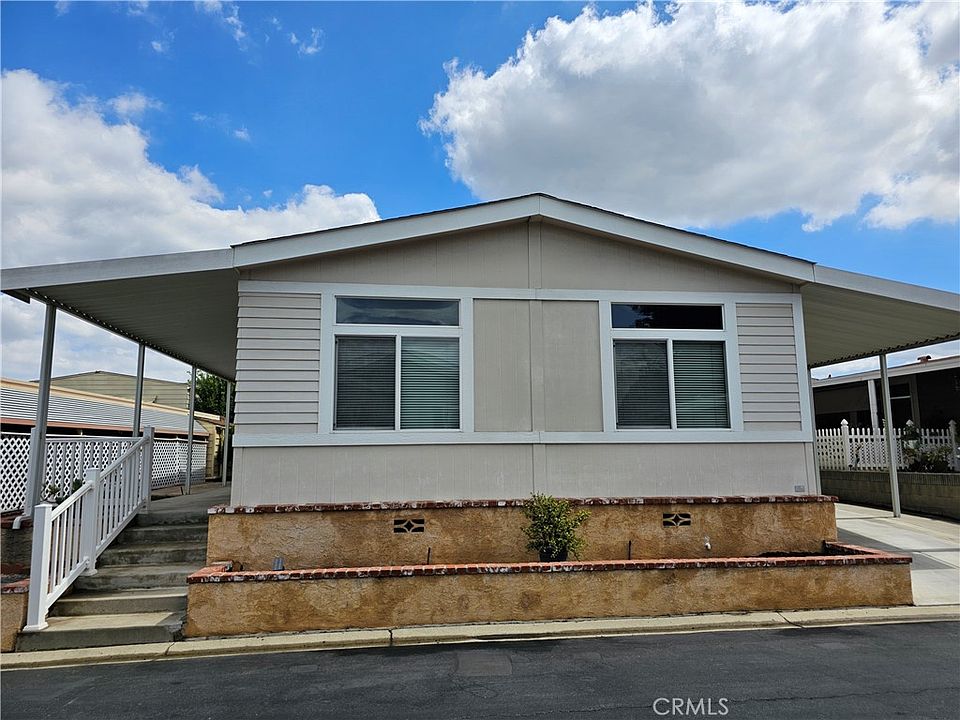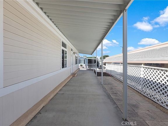 Whittier Downs is a 55+ gated community designed for residents who value connection, creativity, and comfort. The home is nestled on ‘Cypress’ street and is a lovely 2 bedroom/2-bathroom home which also comes with a bonus room that can serve as an office, guest bedroom, meditative sanctuary or hobby/craft room. This mobile home is on a solid foundation and feels like a sturdy, traditional home with 9-foot, smooth ceilings, drywall textured walls, recessed lighting in the kitchen and ample storage throughout. The neutral palette of light tan showcases the architectural accents of gleaming white crown molding, 5-inch routed baseboards and mahogany colored cabinetry in the kitchen & bathroom. The paneled interior doors with lever hardware further enhances the feel of a higher-end traditional home and makes accessibility to rooms easier and more user friendly. Plush, low-cut camel colored wall to wall carpeting is soft and warm under foot and has never been stepped on by cat or dog paws. It has been freshly shampooed for you so please feel free to kick off your shoes! The kitchen is punctuated by satin finished stainless steel appliances with a black enamel & stainless 4-burner gas range and deep stainless-steel sinks with sprayer. The interior living area is flooded with natural light and multiple functional windows for cross breezes, and the primary bedroom has subdued lighting for better rest, sleep and relaxation. The ensuite primary bathroom is spacious, has a walk-in shower and ample storage for linens, towels and toiletries. A dedicated laundry room comes with a top-loading washer & gas dryer and has enough space for additional storage cabinets or a laundry folding table or drying rack; and a backdoor leading to the covered carport & a large, no maintenance 'Tuff Shed’. The large AC unit keeps the interior cool in the summer and the gas furnace in the laundry room keeps it warm when the weather shifts to Fall; and is controlled with the touch of a finger from the digital thermostat. This home supports a lifestyle centered on simplicity and social engagement—where residents gather for game nights, coffee and cards, crafting, and shared experiences. The community is surrounded by shopping, dining, fitness studios, personal care services, and healthcare providers. On-site management maintains the grounds and fosters a cohesive, well-cared-for environment.