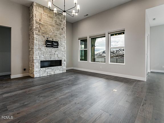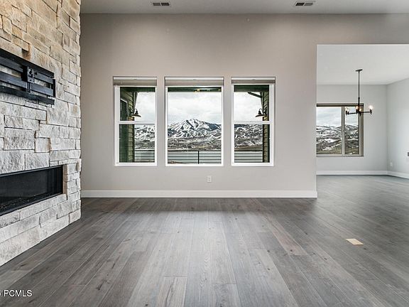 Lakeside Single Family Home in HIDEOUT FOR RENT Pristine condition!! Gorgeous, unobstructed views of Jordanelle Reservoir & Deer Valley East. This 4 bedroom, 6 bathroom, 3933 SF single family home is complete with many upgrades: Bosch appliances including a wall over and under-the-counter microwave, water softener, reverse osmosis, tankless water heater, Simply Safe Alarm, Google Home, blackout blinds, 2 TV mounts, heated garage with storage cabinets, hose bib with hot and cold water capability, epoxy garage floor. First floor captures 180 degree ski area views and boasts a large master suite and luxurious en-suite bathroom. Open concept with family room and 18' stacked stone gas fireplace, kitchen with high-end appliances, 1 wine fridge, large walk-in pantry, and extra cabinets. Front bedroom/office fits any situation. Enjoy a roomy mudroom and laundry, complete with washer and dryer. Lower level is a walkout to back onto an expansive patio, fronting a bank of windows to capture the view. No one will build behind or on the right to obstruct views! Enjoy Pickleball at our community pickleball courts. Family room is equipped with another gas fireplace, 2 bedrooms and en-suite bathrooms. Small kitchen/wetbar offers a sink and Zephr drink fridge. Large storage area. Media/exercise/gym room. Home is UNFURNISHED. Close to State Parks and hiking trails. Minimum 1 year lease. Utilities and landscape maintenance not included in rent. First month's rent and security deposit due upon signing. TENANT IS responsible for ALL utilities, including high-speed Internet and alarm system. Ring Doorbell and security cameras offered. NO SMOKING/VAPING. PETS NEGOTIABLE. Verification of funds and employment required