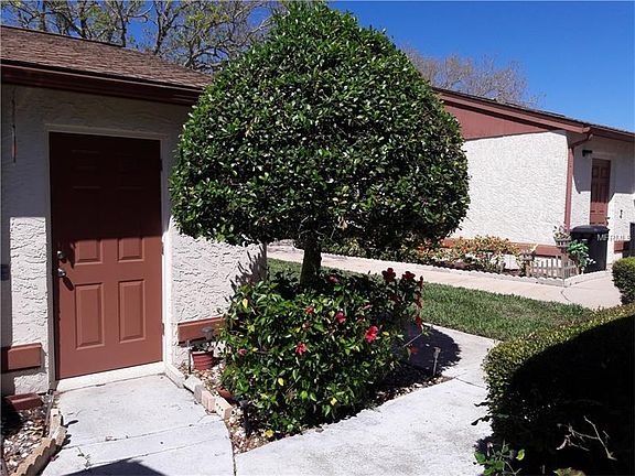 Financing Fell Through, so this cute condo is back on the market. The 2-bedroom, 2-bath condo with detached garage with low HOA payment of $103 which covers lawn maintenance, sprinklers, lawn watering, the recreation building, and the community pool. The entire unit has ceramic tile flooring and neutral painting throughout. One wall of the living room is mirrored making the room even larger than its 15 x 21 size. The open floor plan features split bedrooms and an inside utility closet. The homes are painted by the HOA every five years. Roofs and trash removal are the owner's responsibility. Lots of closet space, nice neutral baths, and a lanai that overlooks a conservation area, so no rear neighbors. Take a peek at this sweet condo, you'll be glad you did. (Condo can be sold furnished, if buyer wishes.). Buyer please verify room sizes.)