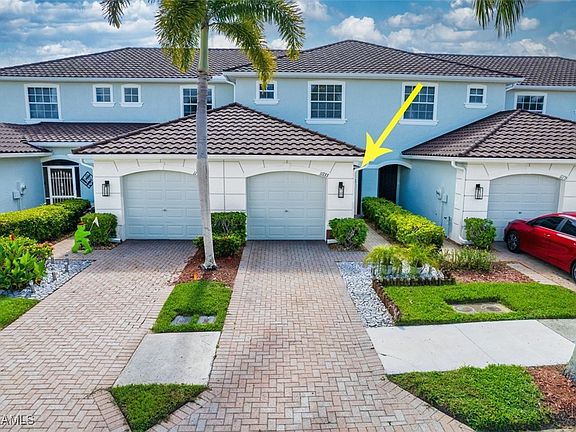 CHECK OUT THE PRICE ON THIS MOVE IN READY TOWNHOME - NOW IS THE TIME TO BUY! Nestled in the gated Olympia Pointe community, this charming 2-bedroom, 2.5-bathroom townhome showcases recent upgrades both inside and out including new exterior paint and a durable metal roof in 2024. Inside, the main level features an attached 1-car garage with new washer and dryer. The updated kitchen dazzles with new appliances, while new light fixtures add a touch of elegance throughout. The family room has an inviting living space with a water view. Upstairs, along with new carpet, you'll find two generously sized bedrooms, each offering privacy and comfort. The master suite features a private en-suite updated bathroom that has been beautifully remodeled and has plenty of closet space, while the second bedroom enjoys easy access to a full bathroom, making it ideal for guests or family members. Enjoy serene water views from your screened in lanai or backyard, perfect for relaxing or entertaining guests Residents of all ages benefit from a range of community amenities, including a clubhouse, swimming pool, gym, playground, billiards, providing opportunities for relaxation and recreation. This pet-friendly community allows two leases per year and has a reasonable HOA fee covering community amenities. Conveniently located near I-75, shopping, dining and RSW airport, this home offers the perfect blend of comfort, convenience, and community. Make your appointment today!