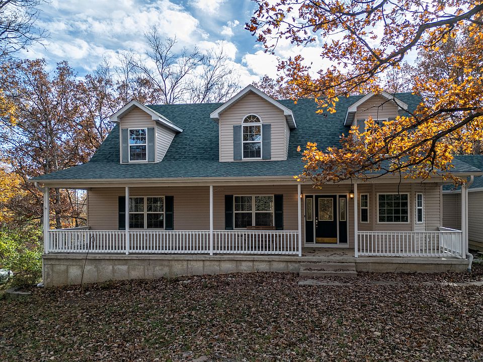 Your country oasis! This well-built home sits on 10.64 heavily wooded, rolling acres only 4 miles off Hwy 63, and features a secluded lake great for fishing and kayaking. You will love this front porch for welcoming friends and family or just enjoying the tranquil setting. The main level features: dining room with a large bay window and hardwood floors; kitchen with a large island, a pantry, abundant cabinet/counter space, and new ss appliances; spacious living room with a gas fireplace; master bdrm with a walk-in closet and a large en-suite bathroom; and laundry room. The upper level provides a family room between 2 large bedrooms. And there's more! The excavated area under the garage is a fabulous workshop with exterior door nearby. The basement is unfinished but already framed for... bedroom, office, bathroom, utility room, family room. The electrical switches, outlets, ductwork/vents are already installed. 6" walls, fiber internet, Harrisburg schools. Enjoy hunting and fishing on your own property!