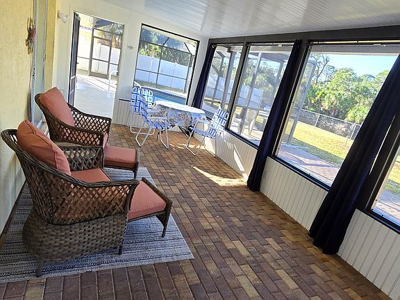 Beautiful home with a heated salt water pool including private backyard in a quiet neighborhood 12 minutes from the beach, 3 minutes to the golf course, restaurants are a short drive and close to grocery stores. It has an open floor plan with a seperate screened in Lanai from the pool with 2 full bathrooms and 2 nice size bedrooms.