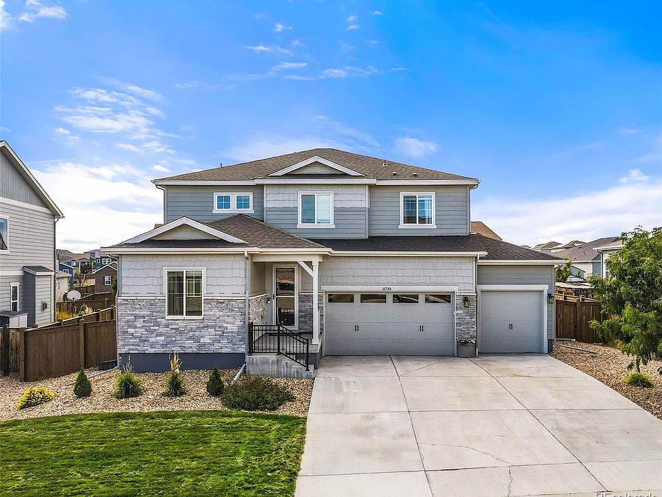 Welcome to a home that checks every box... 4 bedrooms, 4 bathrooms, nearly 3,820 sq ft, and a layout built for today’s lifestyle. Built in 2020, this two-story home in Thornton’s Mayfield community blends modern construction with thoughtful upgrades. The main floor features an open concept with laminate flooring, a spacious living room with a cozy gas fireplace, and a dedicated office for work or study. The kitchen is a standout with a large island, granite countertops, stainless steel appliances, and not one but two pantries, including a walk-in, making organization effortless. A convenient half bath rounds out the main level. Upstairs, carpeted floors and a versatile loft create space for relaxation. The primary suite offers a private retreat with a 3/4 bath featuring dual sinks, a walk-in closet, and tile flooring. A secondary bedroom enjoys its own attached full bath with laminate floors, while two additional bedrooms share another full bath. The laundry room is located upstairs for convenience, and the washer and dryer stay. The full unfinished basement with rough-in plumbing provides 1,235 sq ft of potential for future customization. Additional peace of mind comes with a radon mitigation system, sump pump, and a brand-new roof installed in 2024. Outdoors, the fenced backyard offers a patio, sprinklers in both front and back, and even a gazebo included with the sale—perfect for summer evenings under Colorado skies. A 3-car garage ensures plenty of parking and storage. Located within the Adams 12 Five Star School District and close to parks, shopping, and commuter routes, this home combines comfort, convenience, and room to grow. 11735 Newport Street is move-in ready today with space and features to enjoy for years to come.
