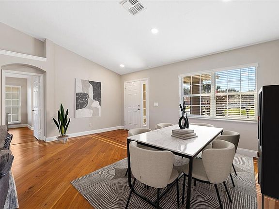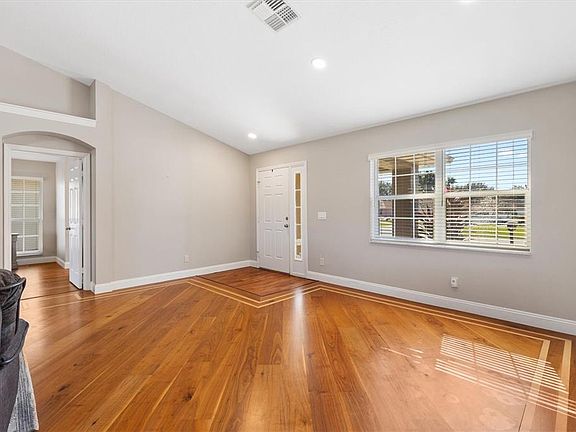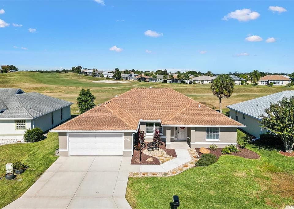 One or more photo(s) has been virtually staged. Located in the Beautiful 55+ Gated Golf community of STONECREST, this stunning home offers an unbeatable combination of comfort, convenience, and lifestyle. Adjacent to THE VILLAGES, Florida, the community provides endless amenities and golf cart access to shopping, dining, and medical facilities. This remodeled CONCRETE/BLOCK/STUCCO home features 3 bedrooms and 2 bathrooms and is positioned directly on the GOLF COURSE, offering fabulous, unobstructed views of the rolling hills. Updates include a 2017 ROOF, 2011 HVAC system, 2025 WATER HEATER, and a COMPLETELY REMODELED KITCHEN AND BATHROOMS 2023. The interior showcases beautiful QUARTZ countertops, abundant cabinetry, stainless steel appliances, HARDWOOD floors in the living and dining areas, and LAMINATE flooring throughout the rest of the home. High ceilings add to the open, airy feel. A large lanai spans the back of the home, with sliding doors from the primary bedroom, living room, and breakfast nook leading to a spacious 55 x 20 foot CONCRETE PATIO, perfect for enjoying peaceful mornings or entertaining with a sweeping golf course backdrop. Could easily add a birdcage should one desire. Stonecrest offers a rich array of amenities and a vibrant, active lifestyle. If you haven’t visited this exceptional community, now is the time to schedule a private viewing and start enjoying retirement at an affordable price.