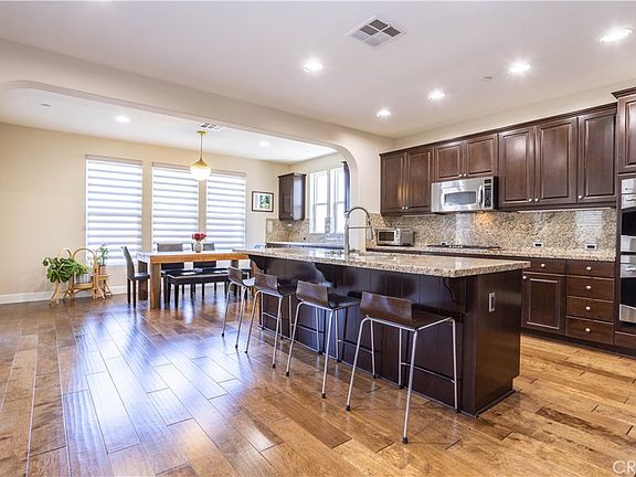 The definition of opulence. Welcome to this stunning 5 bedroom view home, located inside of the prestigious & guard-gated community of Bella Vista. This gorgeous Plan 4 is the largest floor plan in the original Bella Vista tract (built by Shapell). From the moment you enter, you are captivated by the gleaming wood floors. The Chef-inspired kitchen is a gourmet cook's dream, complete with a built-in GE fridge, dual GE ovens, built-in microwave, center island, separate breakfast area, Butler's pantry, walk-in pantry, rich wood cabinets & so much more! The large living room overlooks the amazing rear yard and flows spectacularly from the kitchen. Elegant formal dining room, perfect for family dinners & Holiday gatherings. There is 1 bedroom downstairs, with its own bathroom...perfect for guests or an in-laws quarters. Travel upstairs to find 4 additional bedrooms, including an impressive Master Suite. The Master Suite proudly boasts a private balcony w/ sumptuous views, a romantic tub, separate shower, upgraded counter/ floors & a huge walk-in closet. Also upstairs is a large loft, perfect for a home office, home gym, media room, play room, etc... The laundry room is located upstairs as well, for maximum convenience. Get ready to be thoroughly impressed when you travel outside to your own private rear yard. The rear yard is highlighted by a covered patio w/ fireplace, separate patio & grassy area. Solar lease of $89.62 per month...Seller states that solar lease runs until @2033 with a possible extension to extend at lease end (Buyer to verify & assume solar lease and any buy out/ extensions at lease end). The home is wired for AT&T Fiber/Gigabit internet. Custom window treatments throughout. 3 car attached garage (2 side by side and a tandem).The resort-inspired community area offers a sparkling & inviting community pool/spa...perfect for soaking up the Summer sun. Bella Vista is located in proximity to the amazing Vineyards shopping center, which boasts incredible fine dining & casual dining options, a state-of-the-art AMC movie theater, state-of-the-art Whole Foods w/ its own restaurant inside, fitness gyms & much more! This home is also located near the award-winning K-8 Porter Ranch Community School & the renowned Sierra Canyon private school ( Buyer to verify school districts & enrollment availability, for both the public & private schools in the area).You deserve the best. This is Porter Ranch living at its absolute best!