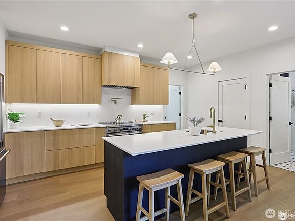 Your private sanctuary awaits in this lovely new construction home. 4 beds, 3 baths and the kitchen of your dreams. 36" professional appliances and large island with seating make hosting a breeze. Every element of this kitchen reflects thoughtful design and uncompromising quality - from Bellmont oak cabinetry and seamless under-cabinet lighting to a striking full height quartz backsplash, pot filler, and pull out lower cabinets that elevate form and function. Large living room, 5 piece bath, walk in closet, vaulted ceilings, A/C, 1st floor bedroom, EV charging. No detail overlooked, and no expense spared. Fenced yard and private drive create space for parking, hosting and play. Quiet area close to restaurants, shops and Matthews Beach park.