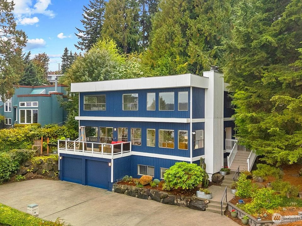 Stunning Lake Washington views from nearly every corner of this beautifully updated home! The main floor boasts a grand formal living room with soaring 20-foot ceilings, a formal dining room, great room with wet bar, and newly remodeled chef’s kitchen with quartz countertops, new cabinetry, & stainless steel appliances—ideal for both casual meals and gourmet entertaining. Gleaming hardwood floors flow throughout the main level, while oversized windows fill the home with natural light, creating warm spaces. Open staircase leads to the upper level with coveted three bedrooms, including a luxurious primary suite with Mt Rainier Views. Lower level features a spacious rec room, additional bedroom and full bath, and an oversized two-car garage.